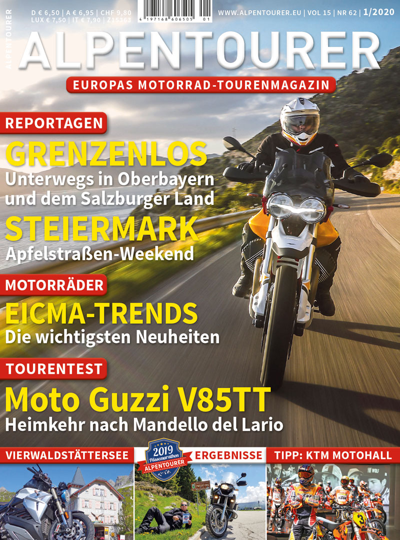 MOTORRAD-TRENDS – Über den Winter liebäugelt mancher mit einem neuen Motorrad. Wir haben uns die Trends der EICMA angesehen und stellen die wichtigsten Neuheiten vor. Außerdem werfen wir einen genauen Blick auf die Honda CRF1100L Africa Twin, die Suzuki V-Strom 1000XT als Last-Minute-Neukauf sowie unserer Erfahrungen während eines Tourentests mit der interessanten Moto Guzzi V85TT.
