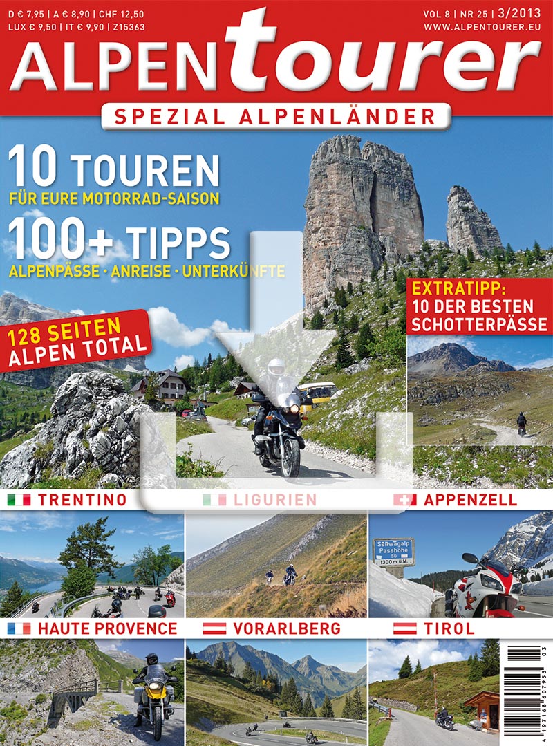 Das muss keineswegs langweilig sein, wie die Tourentipps in diesem ALPENTOURER Spezial Alpenländer erneut beweisen. Zweieinhalb Jahre nach dem ersten Spezial dieser Art haben wir zehn neue Tourenvorschläge und jede Menge Tipps zusammengestellt, die sicher viele von Euch auf neue Wege locken.
