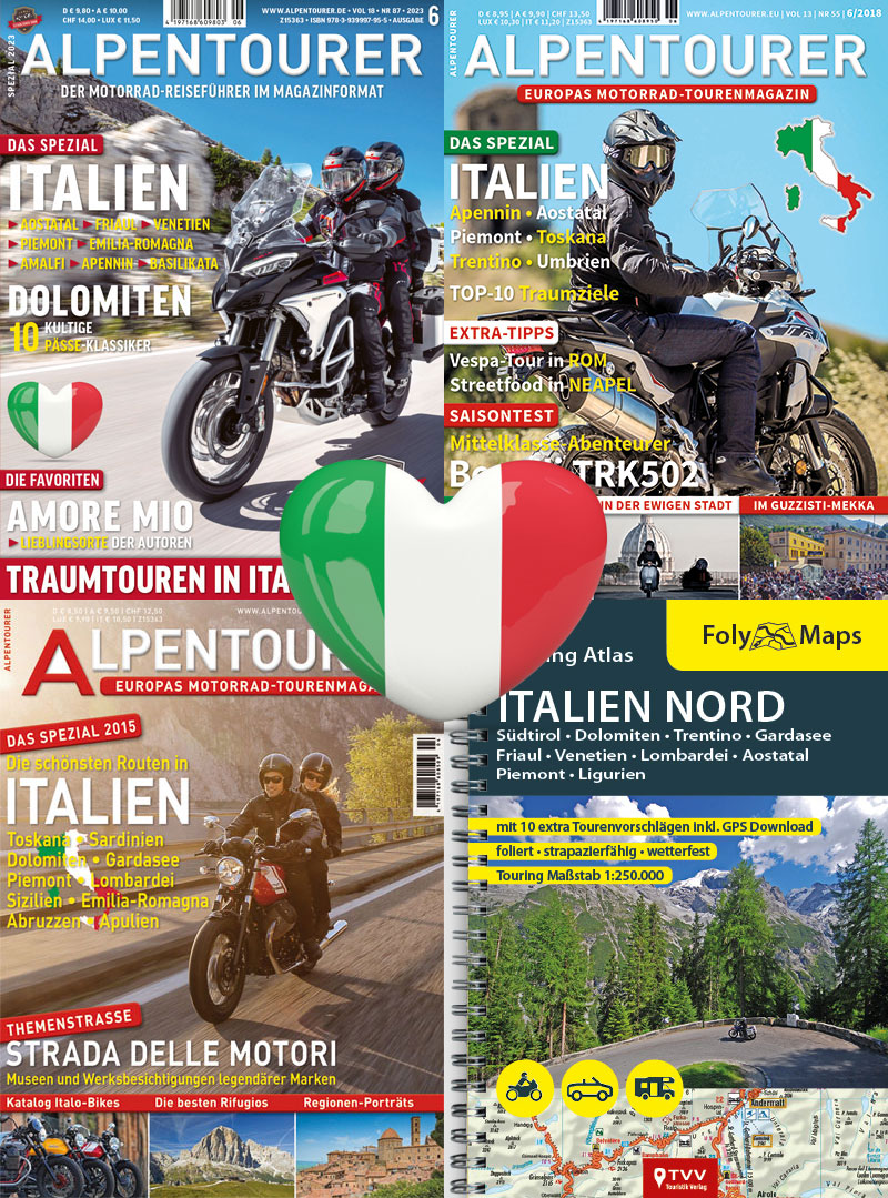 Reportagen zu Bodensee, Bayerischer Wald, Donautal, Wienerwald und Weinviertel. Extratour Tschechien. Tourentest Benelli TRK502X gegen Honda CB500X.