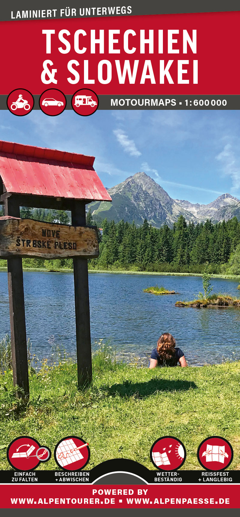 Die laminierte MoTourMaps Tschechien & Slowakei ist im Maßstab 1:600.000 gehalten und deckt das Alpenland vollständig ab. Die Kartenlegende ist auch in deutscher Sprache ausgeführt. Das gesamte Straßensystem der beiden benachbarten Länder ist deutlich erkennbar.