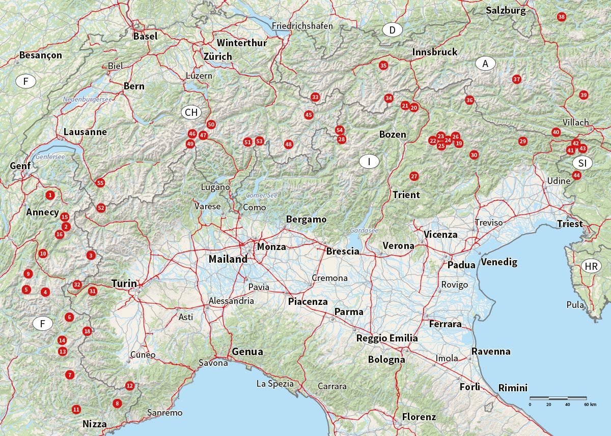 Es gibt hunderte Pässe und noch viel mehr anfahrbare Hochpunkte allein in den Alpen. Kein Wunder, dass sie zu den beliebtesten Zielen für Motorrad-Reisende gehören. Einige dieser Strecken, die zum Teil seit Jahrtausenden den Menschen einen Weg über die Berge weisen, sind selbst Legende. Mal ist es die Streckenführung, mal die überragende Landschaft, die eine Tour über solche Alpenpässe zum Genuss macht. Die Redaktion des Motorrad-Tourenmagazins ALPENTOURER hat 55 ihrer Favoriten zusammengestellt.