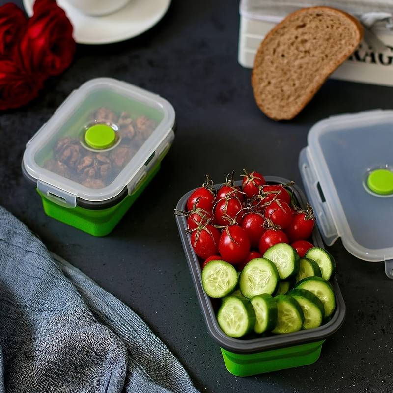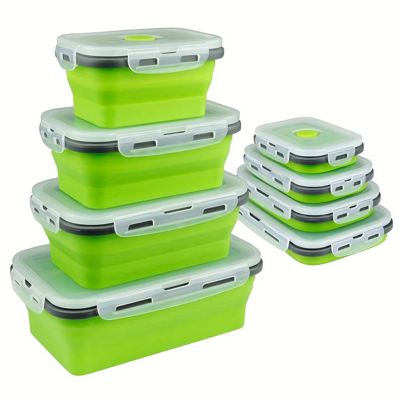 Das Set besteht aus vier BPA-freien Silikon-Frischhaltsdosen mit 350, 500, 800 sowie 1.200 ml Inhalt. Ohne Inhalt lassen sich die Dosen zusammenfalten bei geringem Platzbedarf. Die Deckel schließen absolut luftdicht und halten auch Flüssiges zurück. Die perfekten Tourenbegleiter aus lebensmittelechtem Silikon sind perfekt für den sicheren Transport frischer Lebensmittel geeignet.