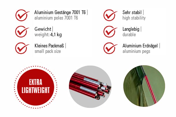 Ein leichtes und dennoch robustes Top-Zelt für alle, die auf unnötiges Gewicht und sperrige Packmaße verzichten möchten.