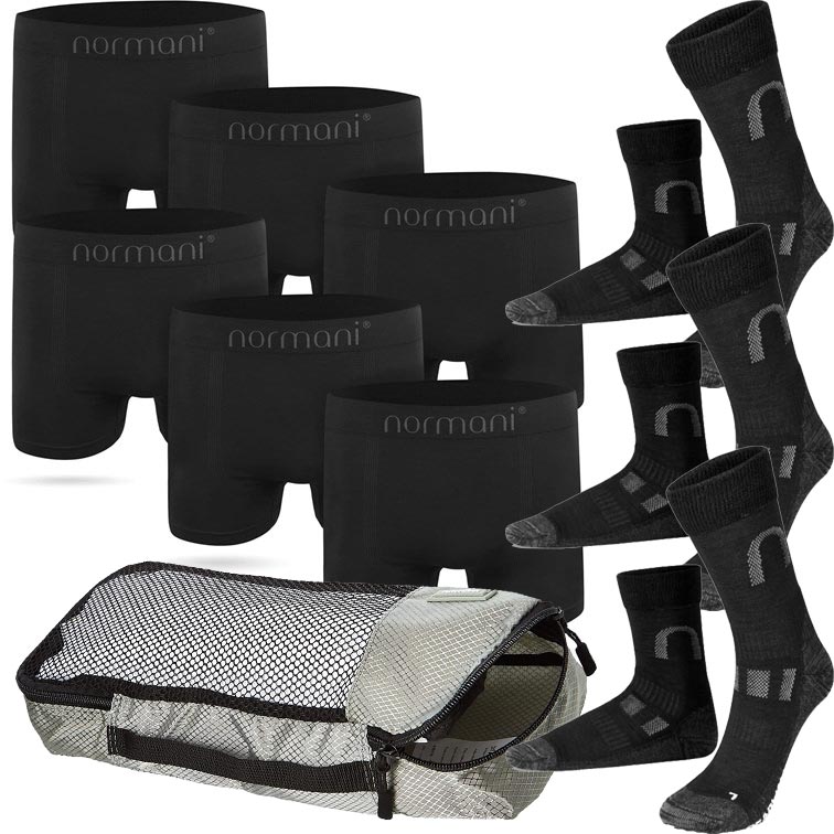 Das ganze Set steckt zudem gut aufgeräumt und griffbereit in einer leichten, aber robusten Travelbag. Im Deckel gibt es einen Mesh-Einsatz, der zusätzlich für Belüftung sorgt. So bleibt Unterbekleidung länger frisch.