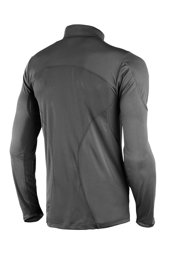 Zur Erleichterung beim Anziehen sind die Ärmel jeweils mit einem Daumenschlupf versehen, damit sie beim Einstieg in eine Jacke nicht aufrollen. Die Ärmel sind zudem außen länger geschnitten als zur Körperseite, um auch bei leicht angewinkelter Armhaltung perfekt zu sitzen. Ein kurzer Reißverschluss mit sicher untergebrachtem Zipper sowie ein hautfreundlicher, komfortabler Stehkragen runden das Technical Riding Shirt ab.