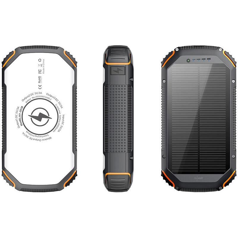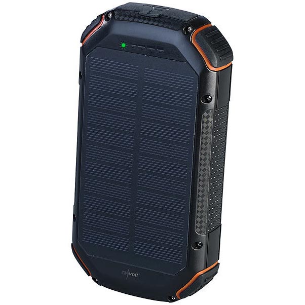 Auf der QI-kompatiblen Ladefläche dieser Powerbank lassen sich Smartphone einfach kabellos laden. Einfach das Qi-kompatible Mobilgerät auf die Powerbank legen: schon startet der Ladevorgang. Die 20.000 mAh der Powerbank verlängern die Laufzeit eines Smartphones um bis zu 100 Stunden – perfekt für unterwegs. Wird das Solarpanel der Powerbank zur Erhaltungsladung genutzt, verlängert sich die mögliche Nutzung weiter. Neben der Powerbank-Funktionalität überzeugt auch die starke LED-Taschenlampe mit zusätzlichem SOS-Licht. Außerdem lassen sich Geräte natürlich auch an den USB-C- und USB-A-Ausgängen laden.
